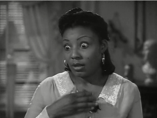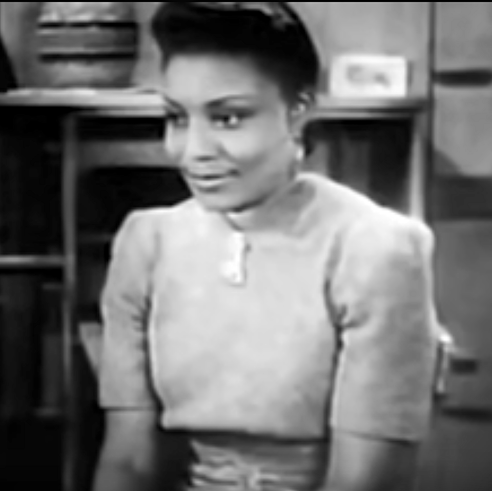 We do not know the actresses name the IMDB does not list her. One day I expect to receive a blog comment that says “You uneducated fool! Everybody KNOWS it’s a young Rudy Dee / Hazel Scott / Dorothy Dandridge.” Until that time… the mystery remains. At least in my house. (Scroll down for an update!)