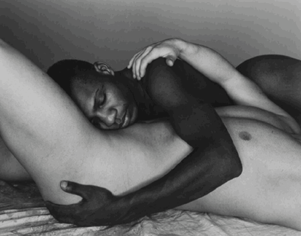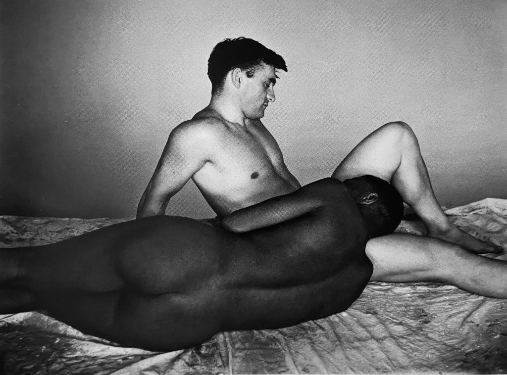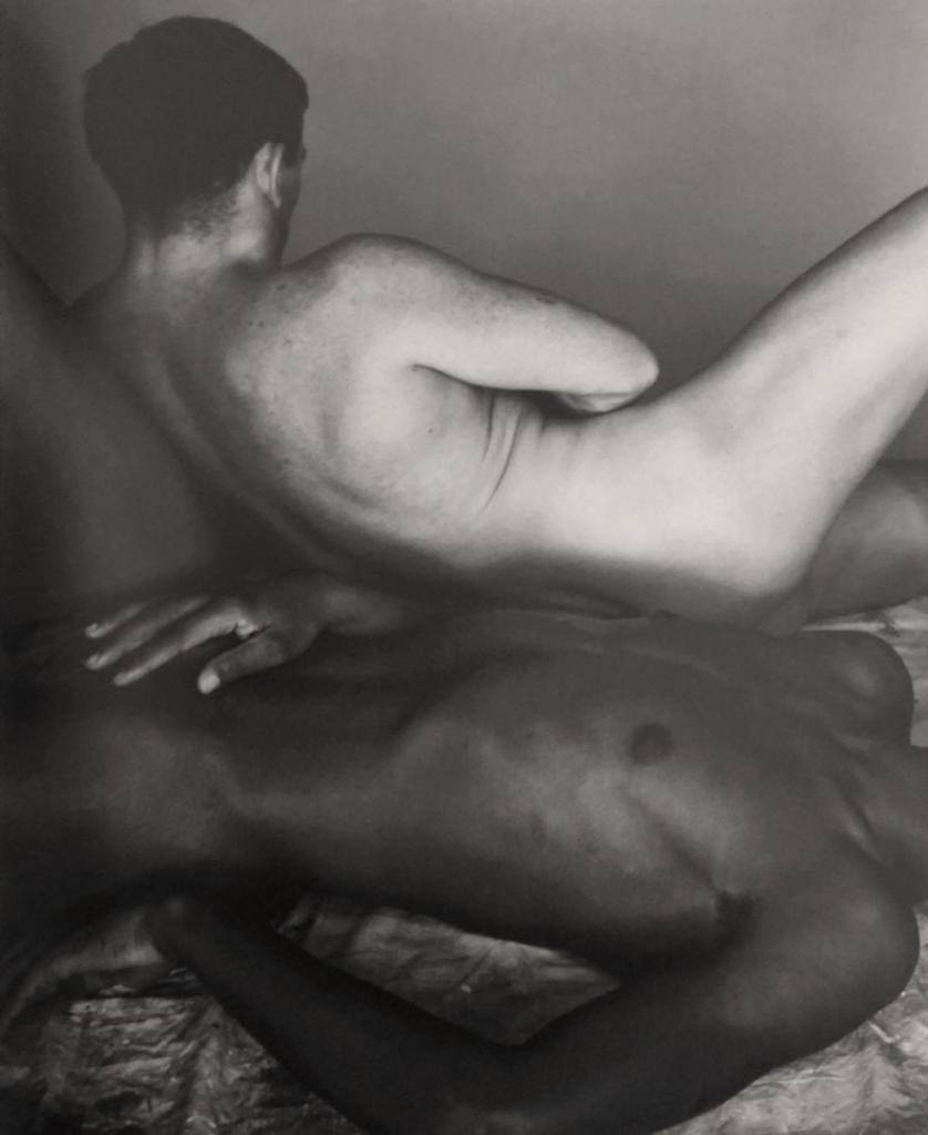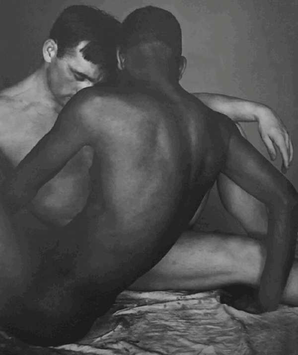 “Johnny” was John Leapheart, an African-American model who was equally familiar with Platt Lynes’ bed and photography studio. The resulting photos of Buddy and John are now some of the most popular of Platt Lynes’ work, although they were not published until decades after his death. David Leddick’s Pioneering Male Nudes notes “Their black and white bodies, interwoven, create strong abstract shapes. The photographs were particularly daring because they broke nudity, homosexual and racist taboos of the time.”