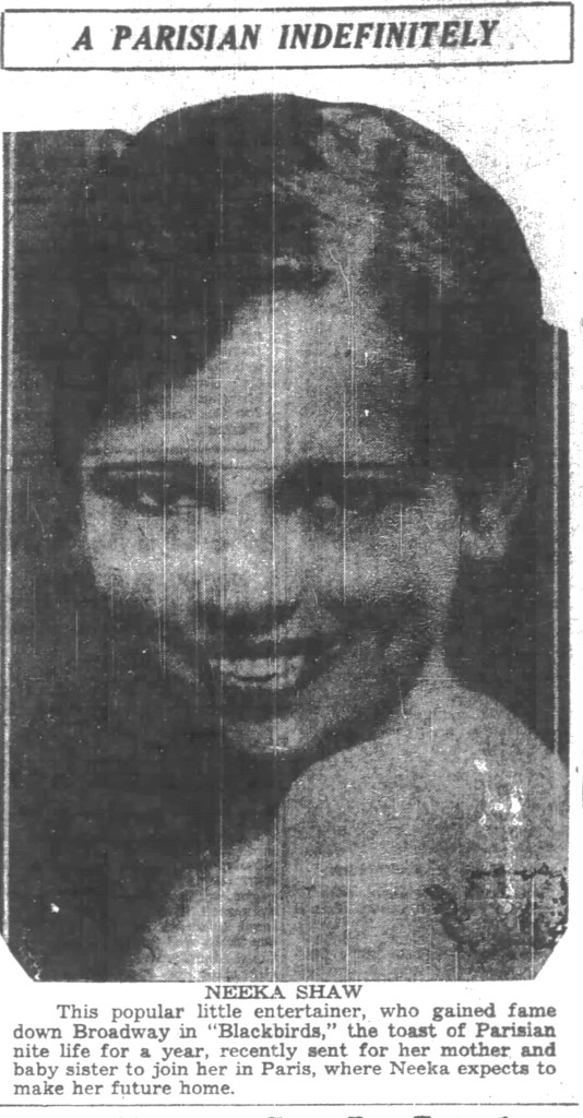 On February 12, 1938, Billy Rowe’s Harlem Notebook reported “Neeka Shaw is in a serious condition in Europe. She’s suffering from T.B. and other ills which doctors report are too far gone to be cured.”