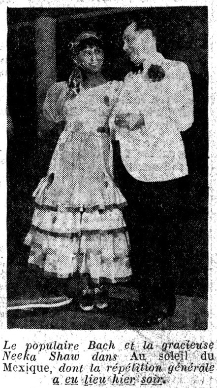 Back in Gay Paree, Neeka was cast as Kokolani in the premiere production of the operetta Au Soleil du Mexique (In The Mexican Sun). The show was a critical success and ran for 232 performances through September, 1936. She then returned to the U.S. for a three month trip to visit her family.