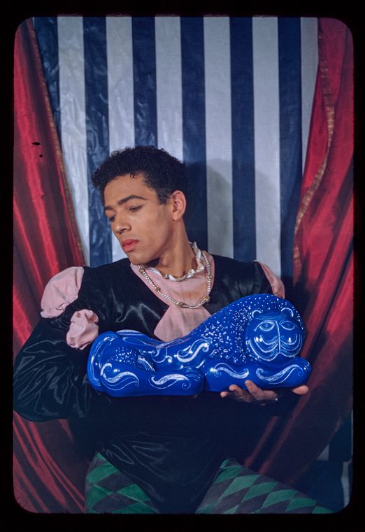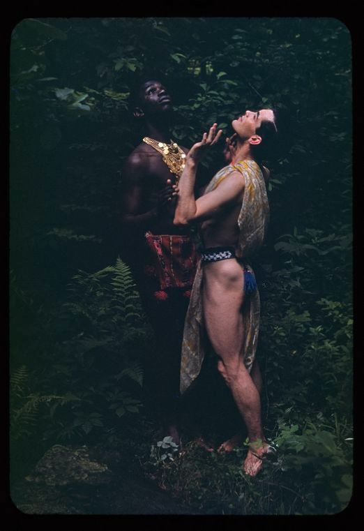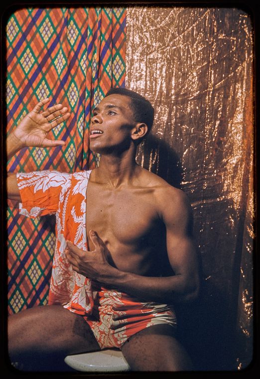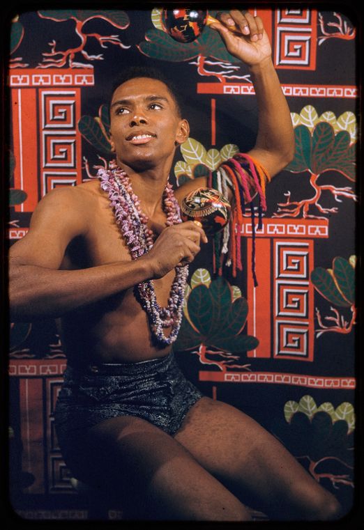 With certain male subjects – some of whom were part of Van Vechten’s bohemian social circle – the costumes would come off after the ballerinas had left the studio. Other photos have what are described as “improvised costumes” – sparkling fabrics and accessories paired with ornate props and patterned backdrops to further enhance these colorful images.