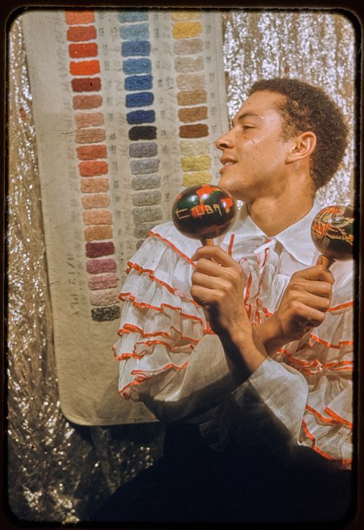 Given that level of continuity in his black and white photographs, I was pleasantly surprised to discover that he also utilized color slide film. Starting in 1940, he primarily used it for photo shoots with dancers from the American Ballet and later the New York City Ballet. The color slides beautifully captured their eye-catching stage costumes. He would sometimes use two cameras in these photo sessions, shooting with color as well as black and white film. The striking contrast of these photos provides further proof of just how vibrant the color images remain, 80 years later.