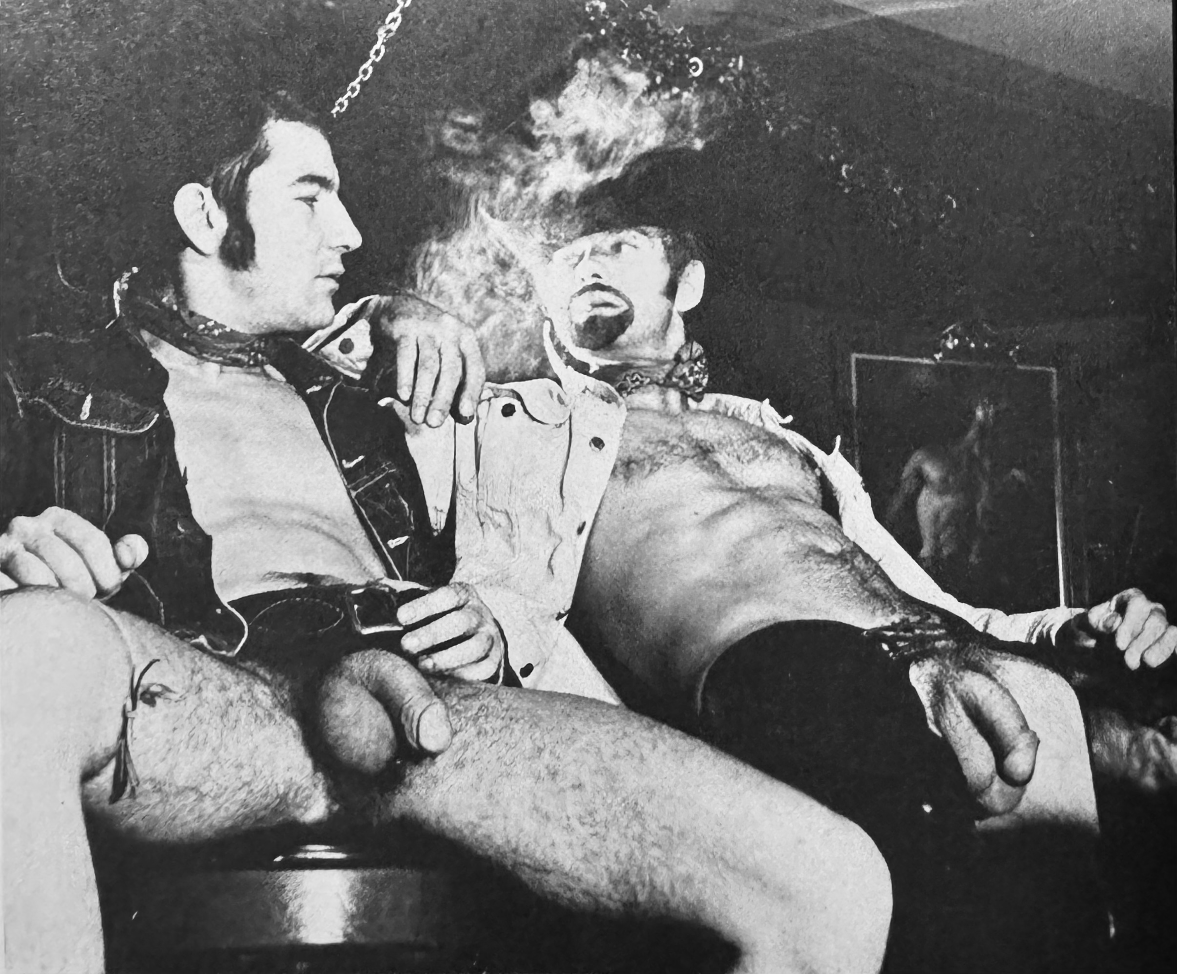 Kurt Bieber (in a Colt t-shirt) outside Badlands in the West Village, NYC (1979)