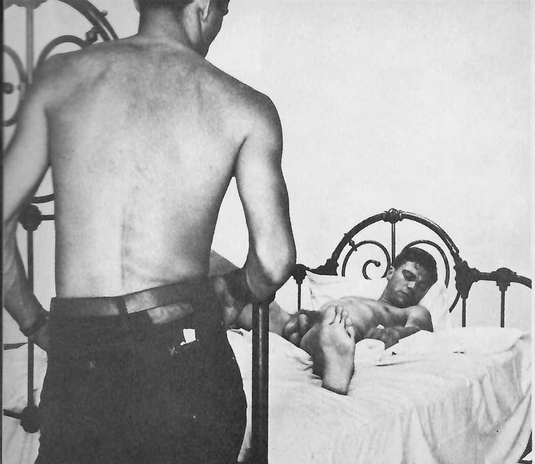 Following the success of Little Me, Bieber continued acting as well as modeling. He found work as a “posing strap” model for Male Today and other physique magazines. He was an early subject for Jim French, a photographer who was starting up a photo studio under the name Rip Colt. An early Colt film loop lists Bieber as one of the performers – a softcore scene with three muscular models lathering each other up in a shower – but none of the models appear to be him.